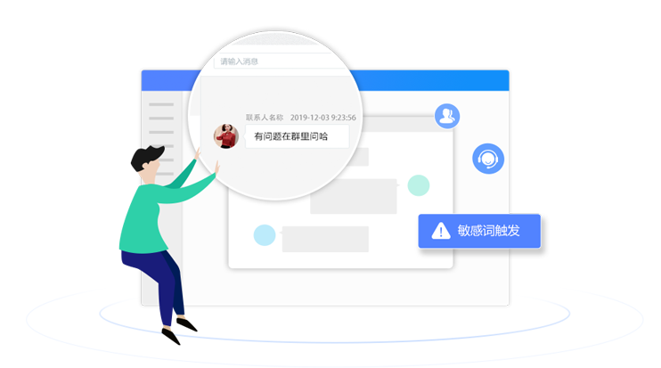 主管可查看員工和客戶的聊天內(nèi)容,并可以設置規(guī)則,對敏感行為 進行記錄,一旦發(fā)生敏感行為,主管可及時收到提醒。